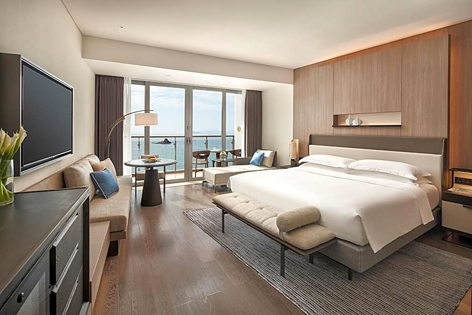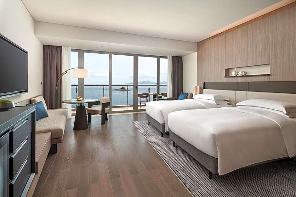 Guests will have a special experience as this suite offers a pool with a view and a hot tub. The spacious air-conditioned suite provides a TV, soundproof walls, a mini-bar, executive lounge access as well as sea views. The unit offers 1 bed.